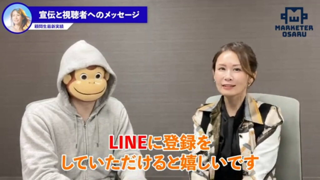 おさる:素晴らしい捉え方をされますね。多くの人は受け取ってもらえて、公式LINEのお客様を増やすだけみたいなゴールになってしまいますけれど、その先のお客様の変化というところですかね。発信者自身もそういうフィードバックをもらってすごく嬉しかったと。