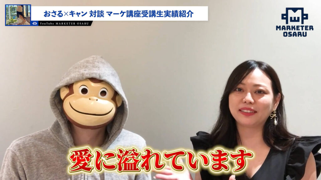おさる:今回はSNS動画マーケティング × コンテンツ販売講座の実績者として、キャンさんにお越しいただきました。よろしくお願いします!