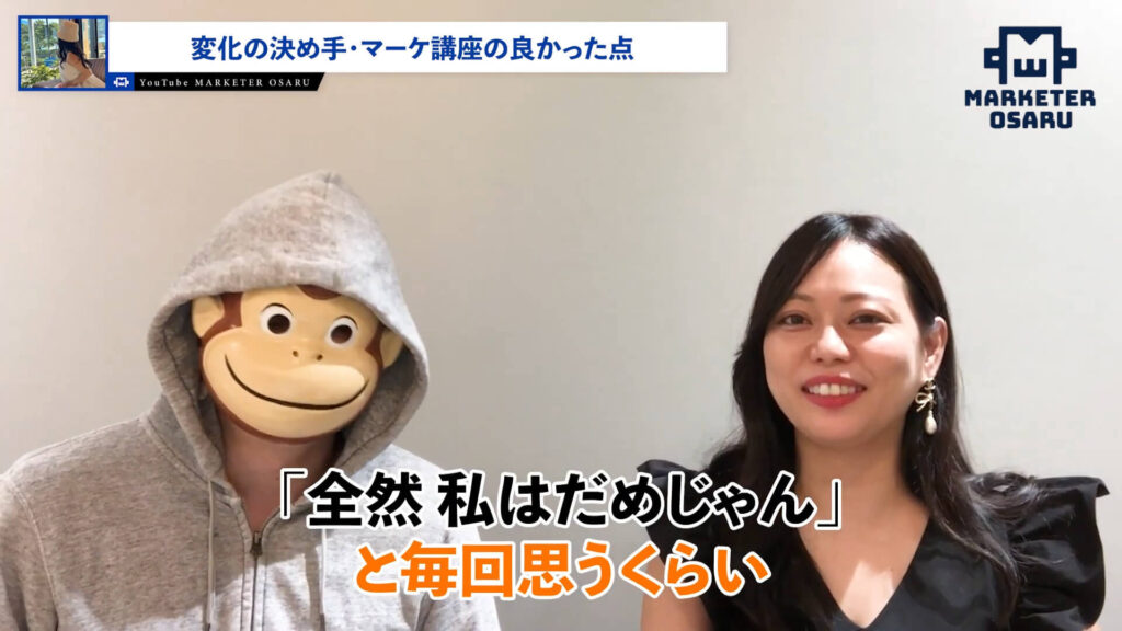 おさる:講座を受けてみて、最も大きなマインドの変化って何でしたか?