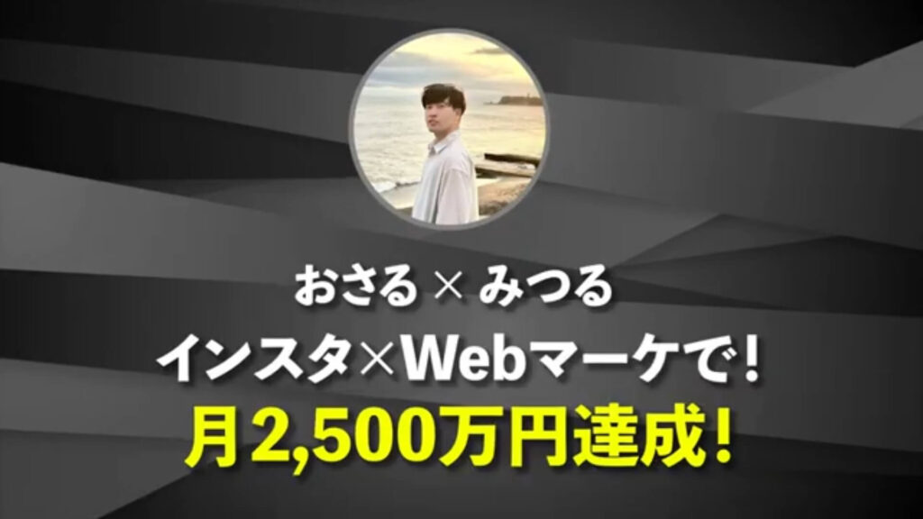 みつる:おさるさんの講座に入会してから売上の最高でいうと、月2,500万円というところで売り上げさせていただきました。すごく跳ね上がった印象を持たれると思うのですが、共同運営で携わらせていただいているインスタスクールの顔として活動されているインフルエンサーさんがクライアントになりました。