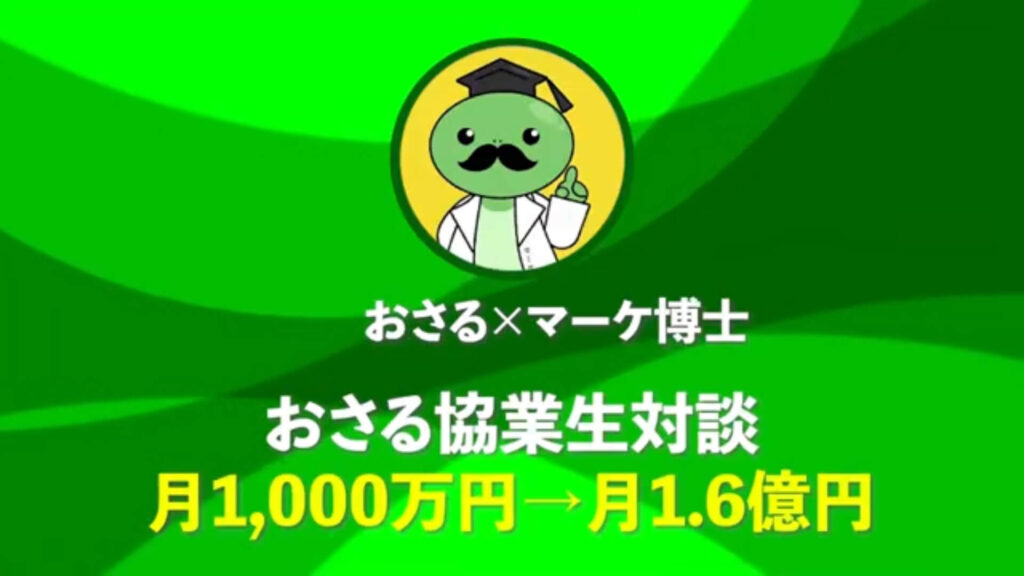 おさる:実はもう僕のチャンネルに1度出ていただいて、そのサムネも置いておきますが、月3,000万円を達成されています。