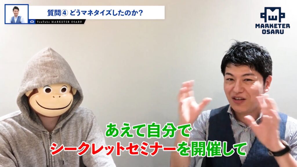 おさる:あれ本当にすごかったです!しかもYouTubeにアップして、メールマガジンにも毎回貼っているっておっしゃってましたよね?