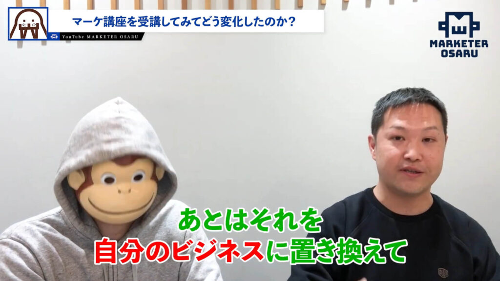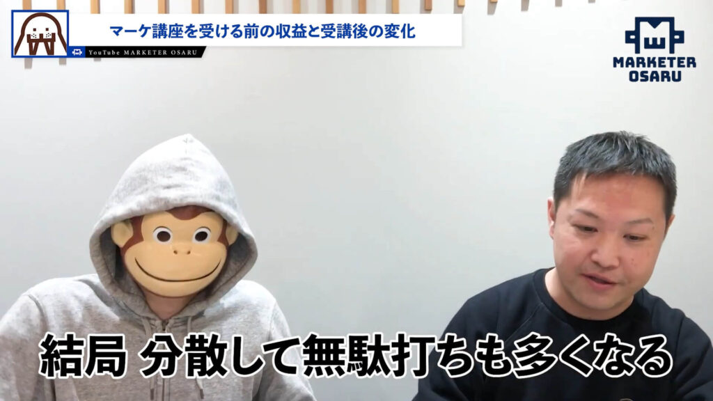 おさる:質問の1つ目ですが、講座を受ける前の収益と購入前の悩みはいかがでしたか?