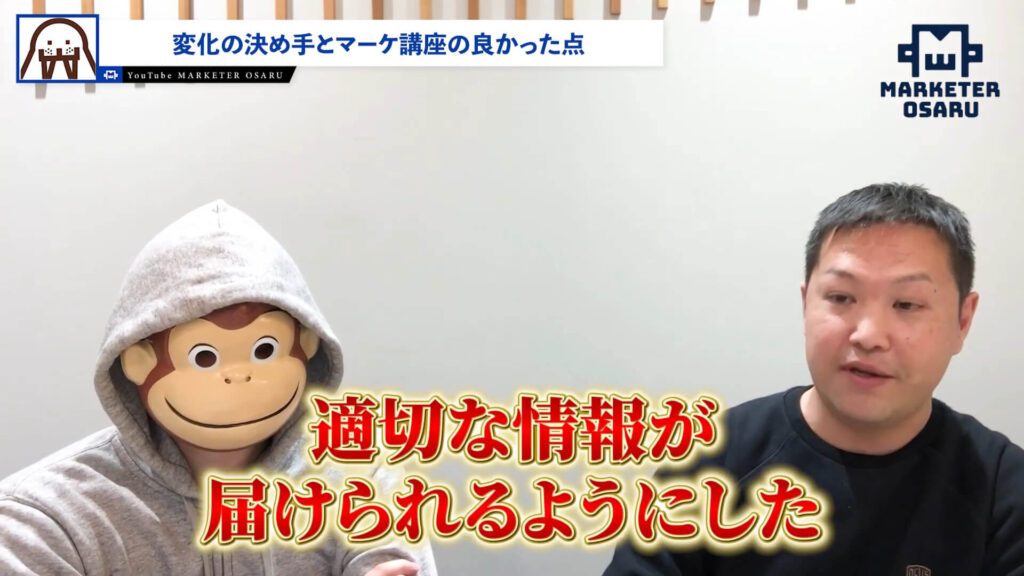 おさる:3つ目の質問をします。なぜ売上が上がりましたか?変化の決め手になったものは何ですか?