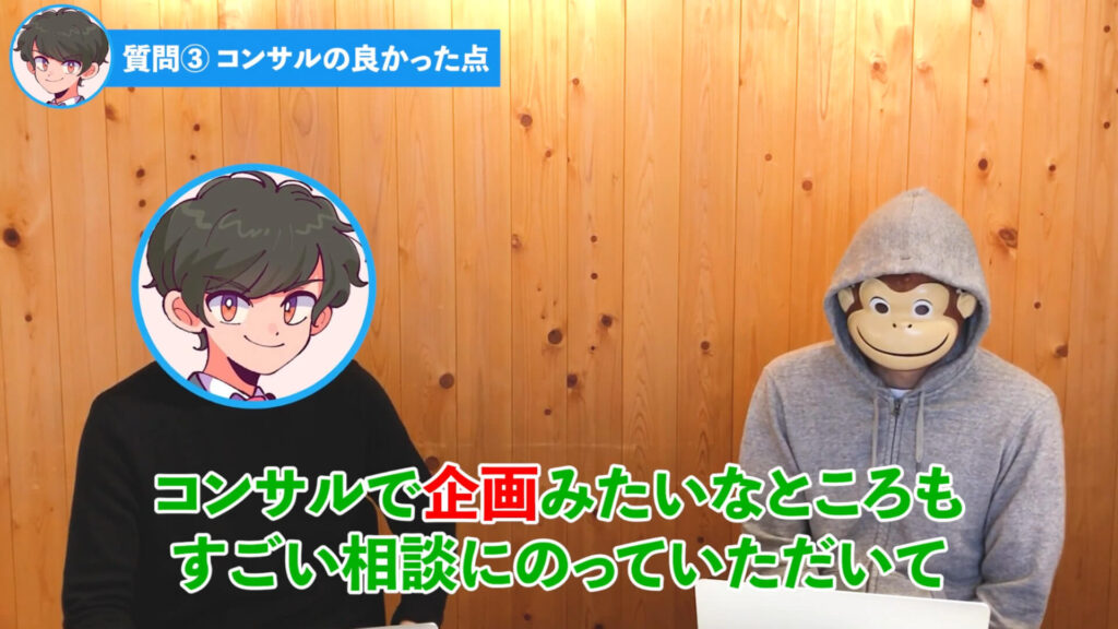 ヤマト:なので本当にあのときコンサルを受けて良かったなと思っています。おさるさんは1年前から影響力がすごくあったので、個別コンサルをやってますっていうのを見て「ふーん」って思ってる人はいっぱいいると思うんです。そして今はもうやってないというのを見て、受けておけばよかったと思ってる中級者以上の人って多分すごいたくさんいると思います。