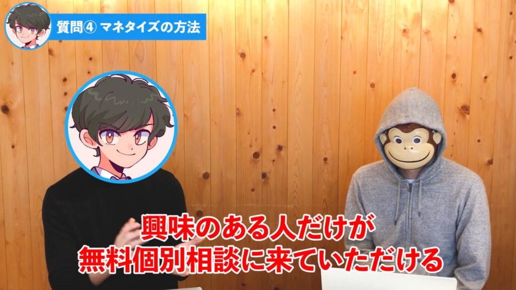 おさる:はい。ありがとうございます。質問4つ目ですが、どう実際にマネタイズしてきたのかについて教えてください。