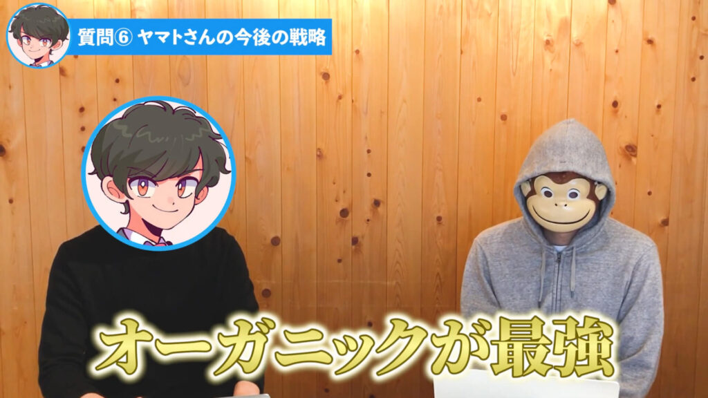 ヤマト:そうです。対してオーガニックは、以前の自分のコンテンツっていうのを回遊してもらって、どんどん教育度合いが高まっていくっていうところもありましたね。以前のコンテンツっていうのをなるべく見てもらうようなコンテンツを提供するようにしていて、それはけっこうおさるさんのYouTubeを参考にさせてもらっています。
