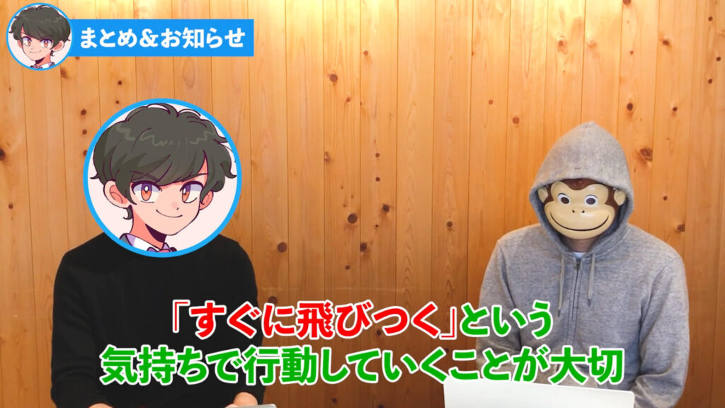 おさる:はい。ということで、次の動画でお会いしましょう。