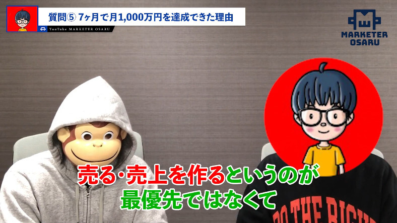 おさる:そこから販売に進み、月商1,000万円は本当にすごいことだと思います。その要因は何だと思われますか?