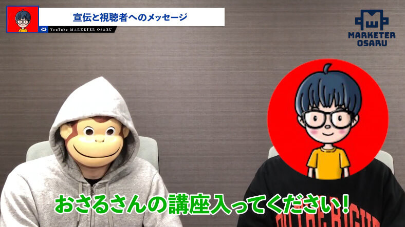 おさる:すごいですね。しかも顔出しなしの動画でそこまで成果が出るというのは、かなり希望が持てますね。