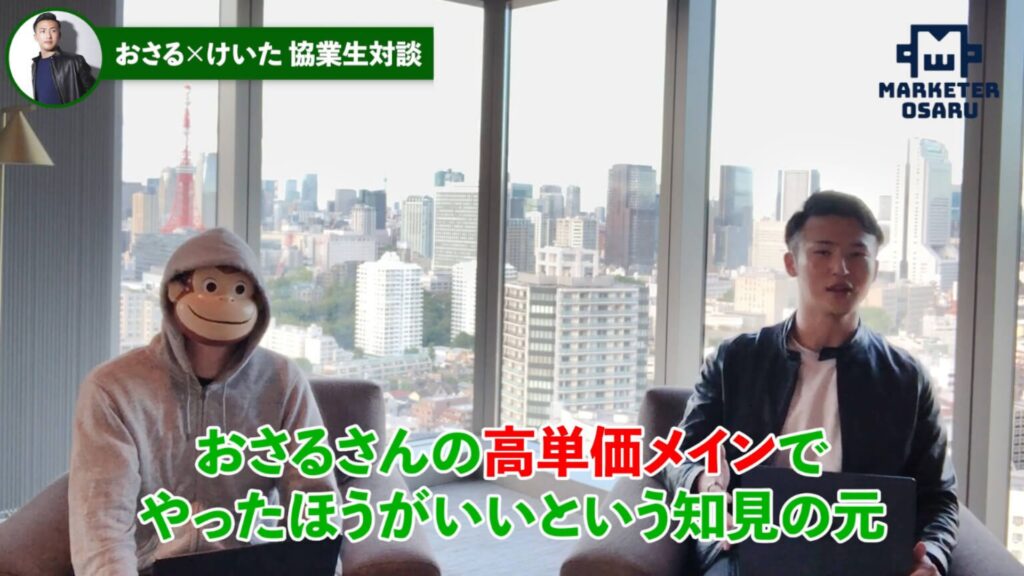 けいた:そうですね。以前はXで発信しても、リストを貯めるだけで商品はほとんど売っていませんでした。ですが、おさるさんのアドバイスで高単価商品を作り、販売するようにしてからは一気に売上が伸びました。
