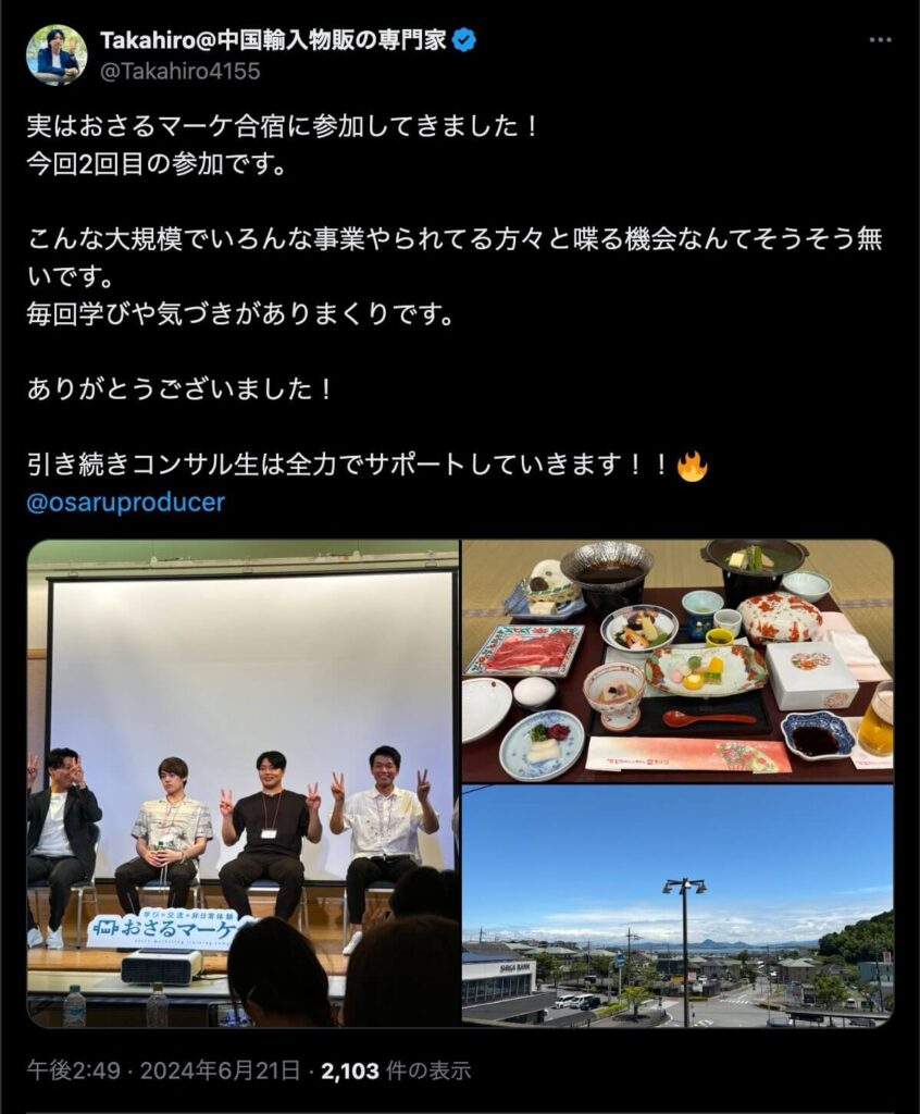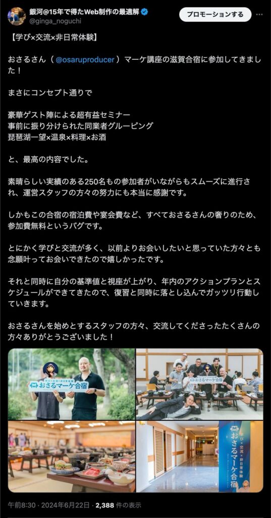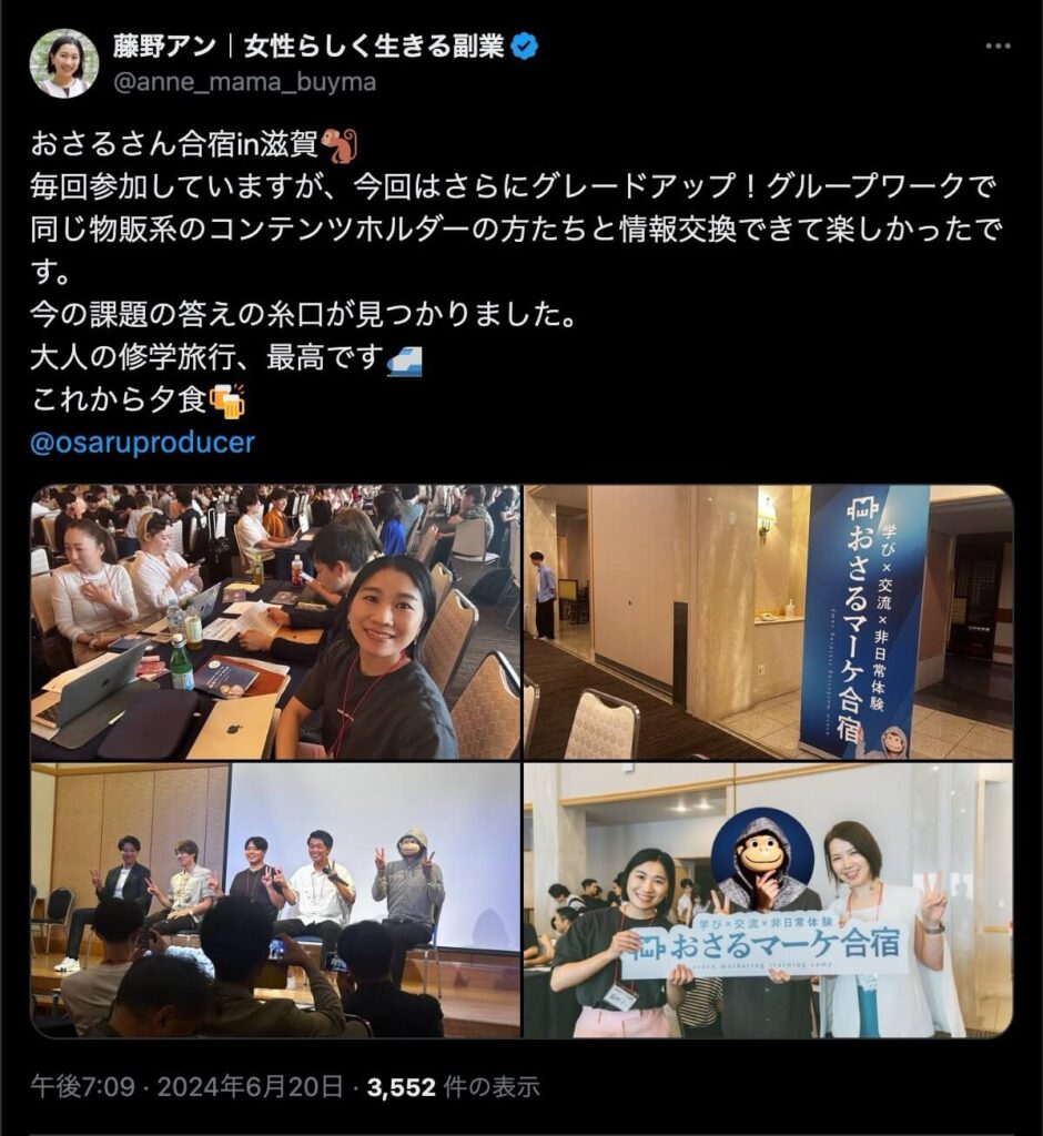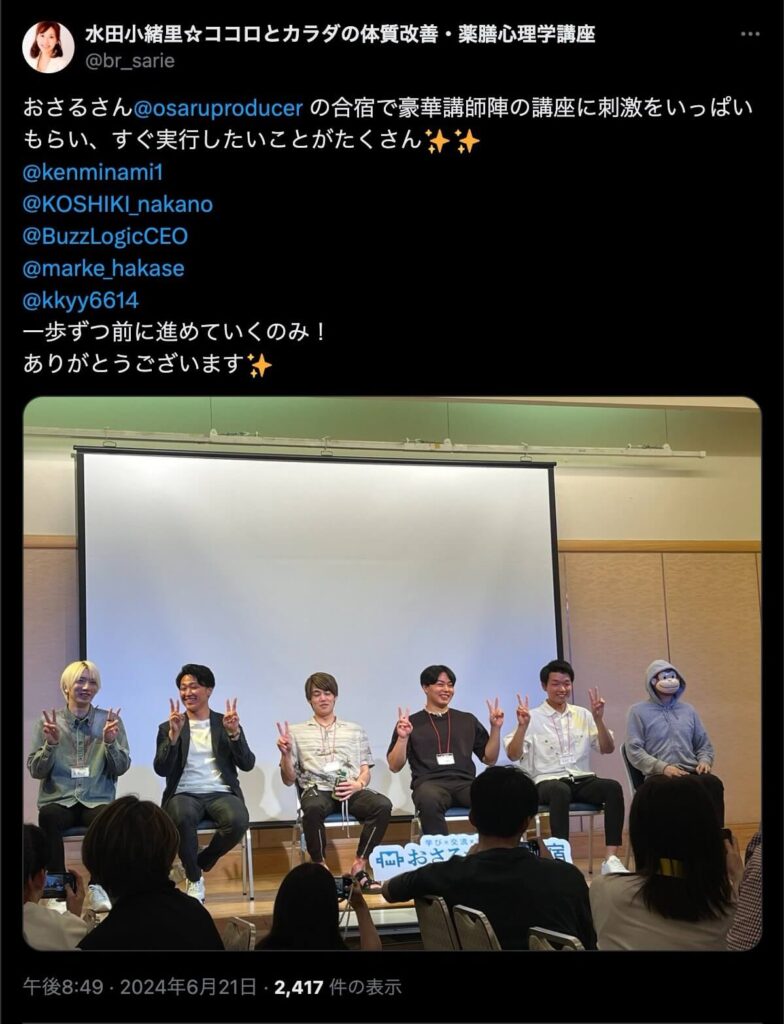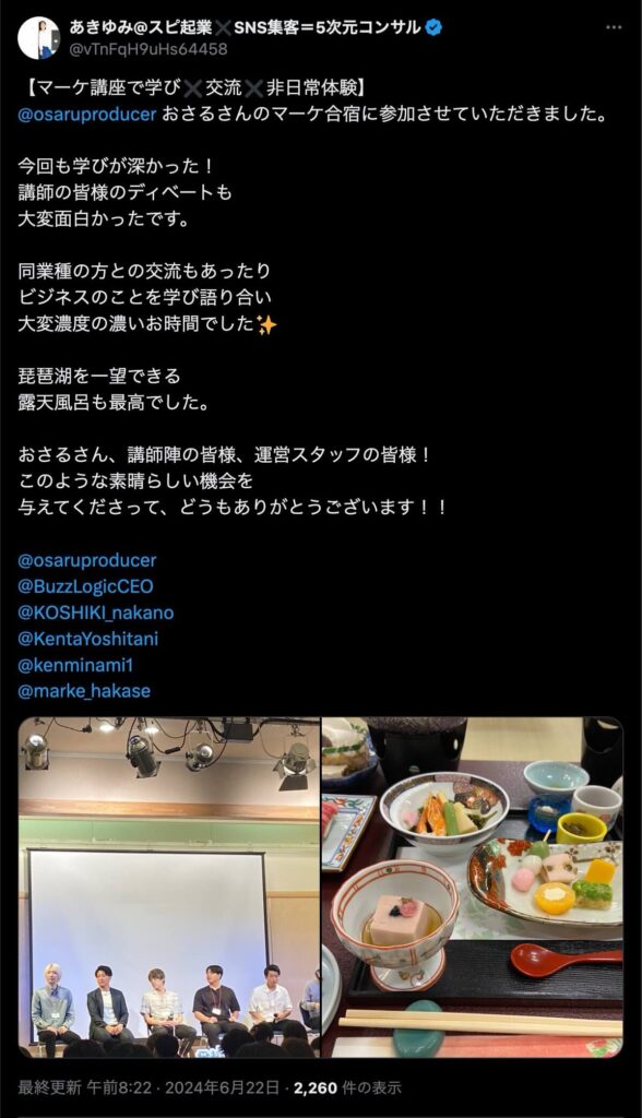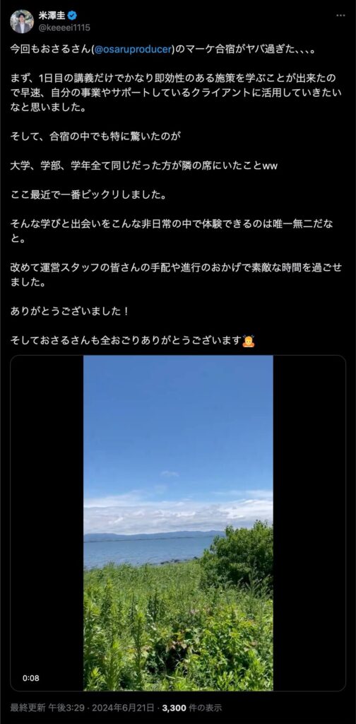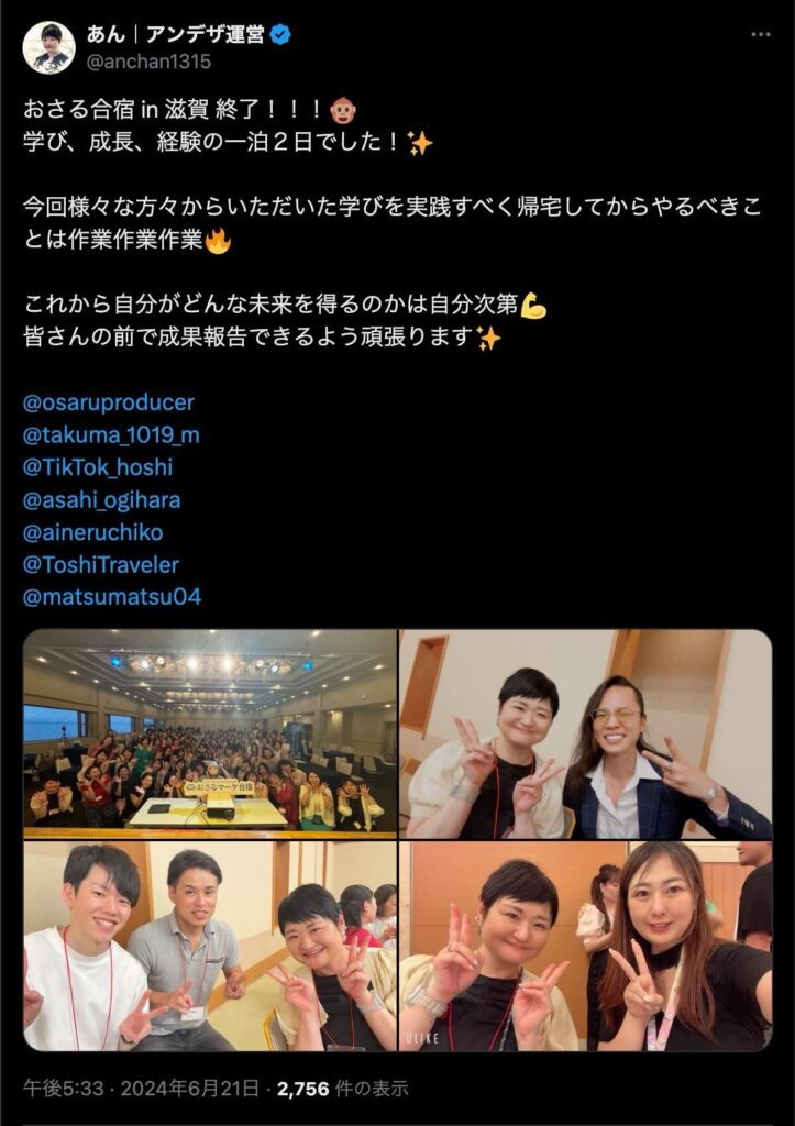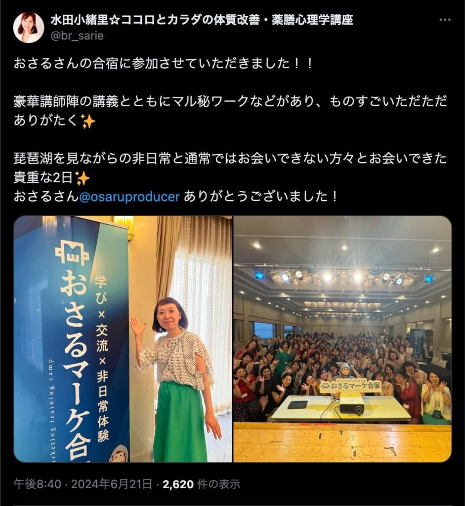 2024年6月20日、総合マーケ講座のおさるマーケ合宿が開催されました。今回も素晴らしい熱量を持った受講生と、運営スタッフによって大成功となりました。