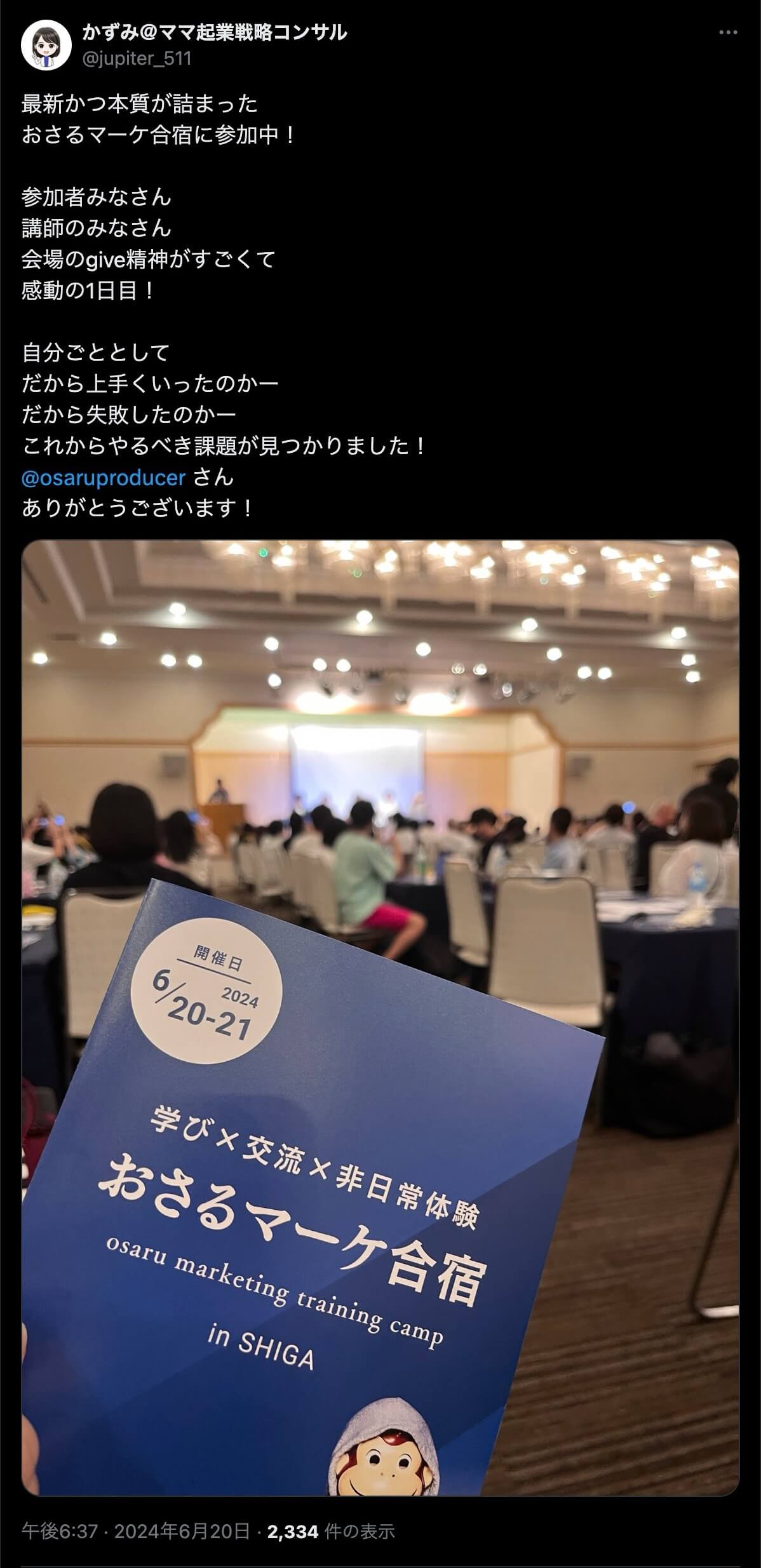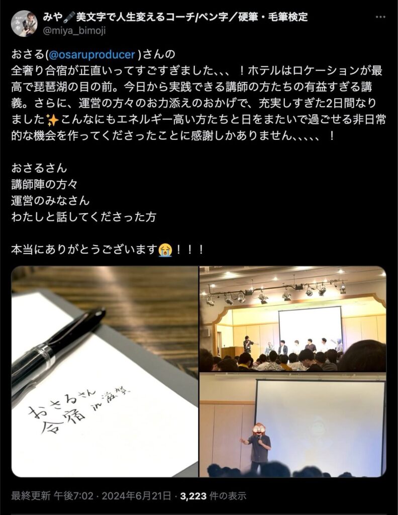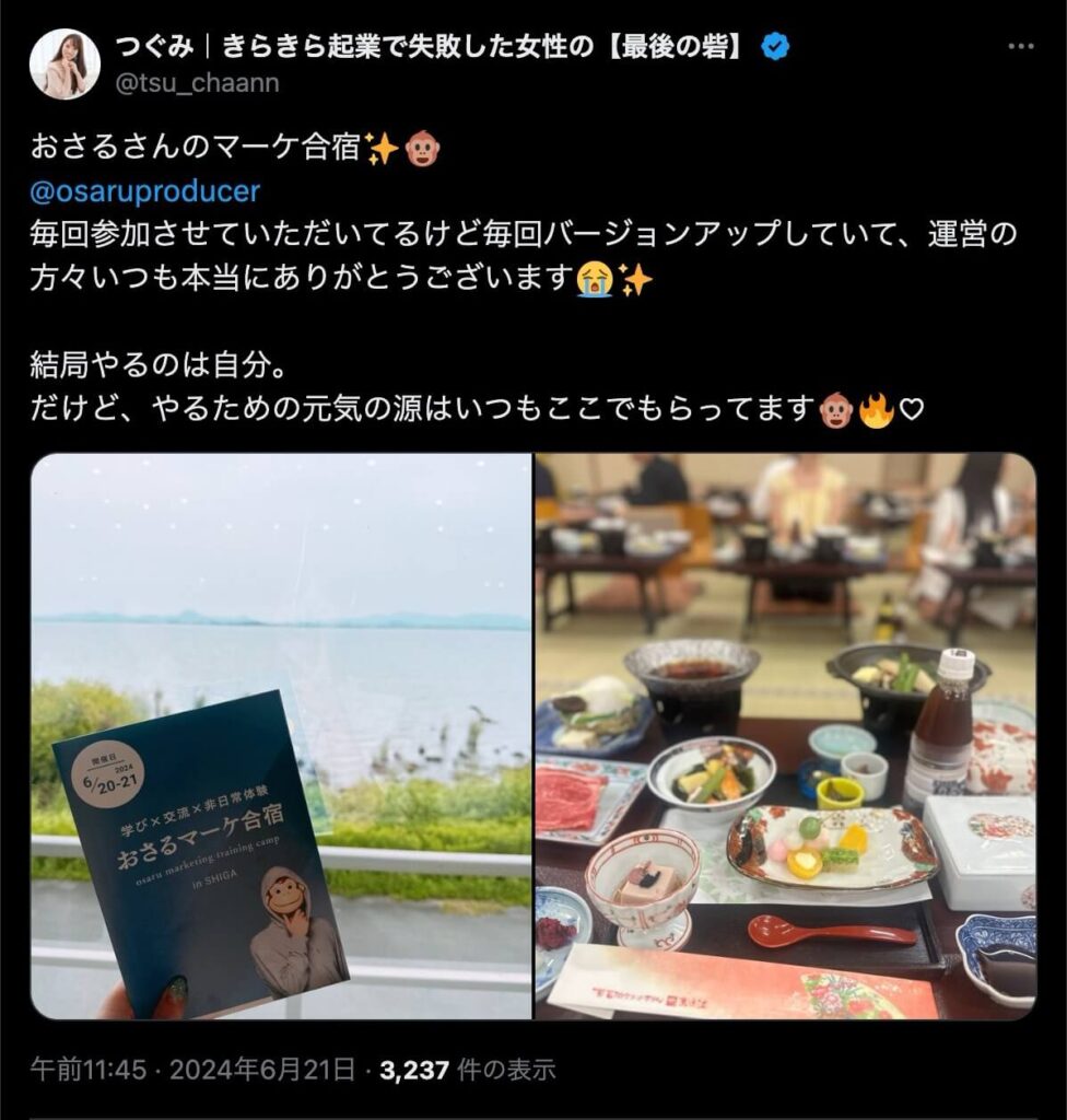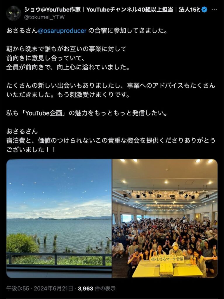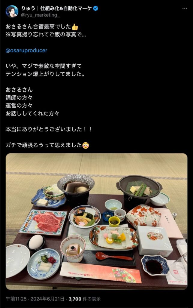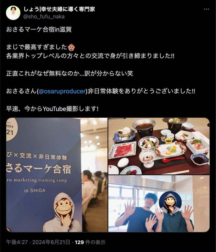 2024年6月20日、総合マーケ講座のおさるマーケ合宿が開催されました。今回も素晴らしい熱量を持った受講生と、運営スタッフによって大成功となりました。