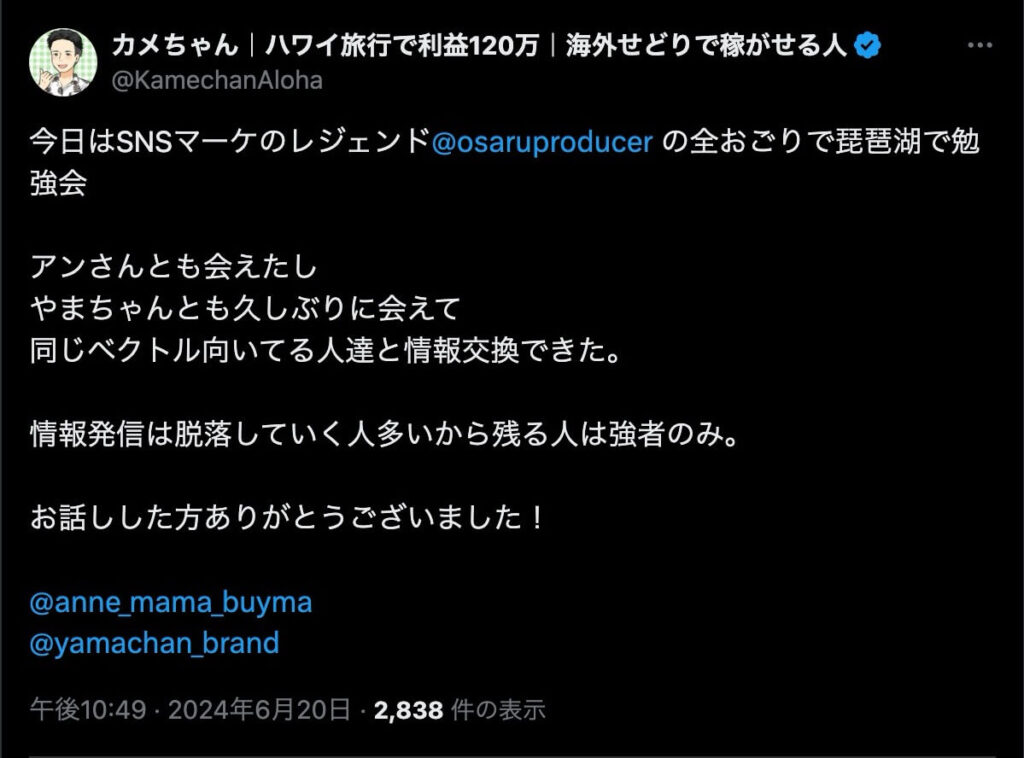 など、そのすべてがおさるの奢りですので、おさるの総合マーケ講座受講生は無料で参加することができます。そのため回数を増すごとに参加希望者が増え、抽選当選者のみが参加できる大人気企画です。